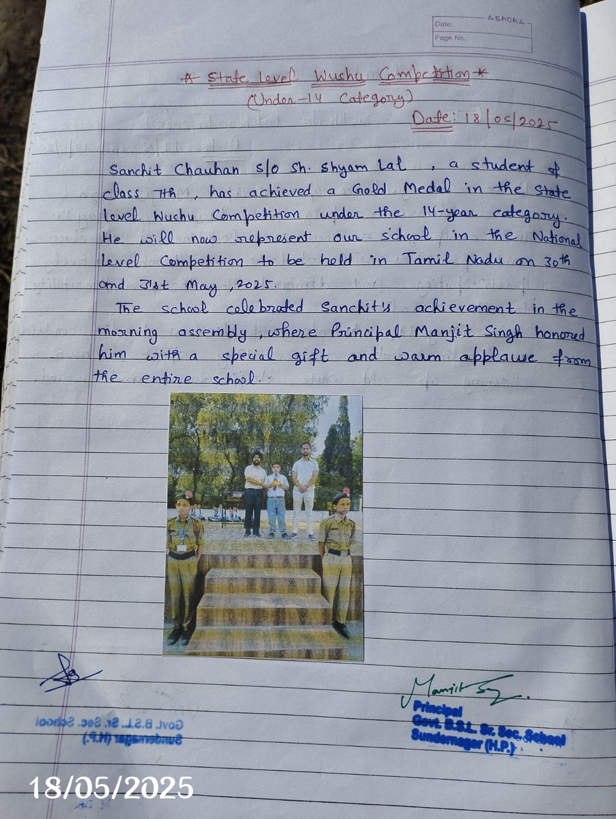 Ishan Chauhan won a gold medal, and five silver medals and two bronze medals were secured by students in a district-level fencing competition held on September 15, 2014. Five players were selected for the state-level competition in Una district, scheduled for November.