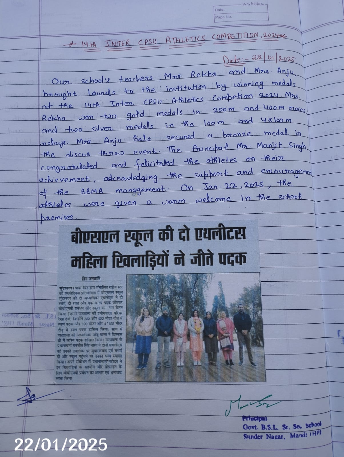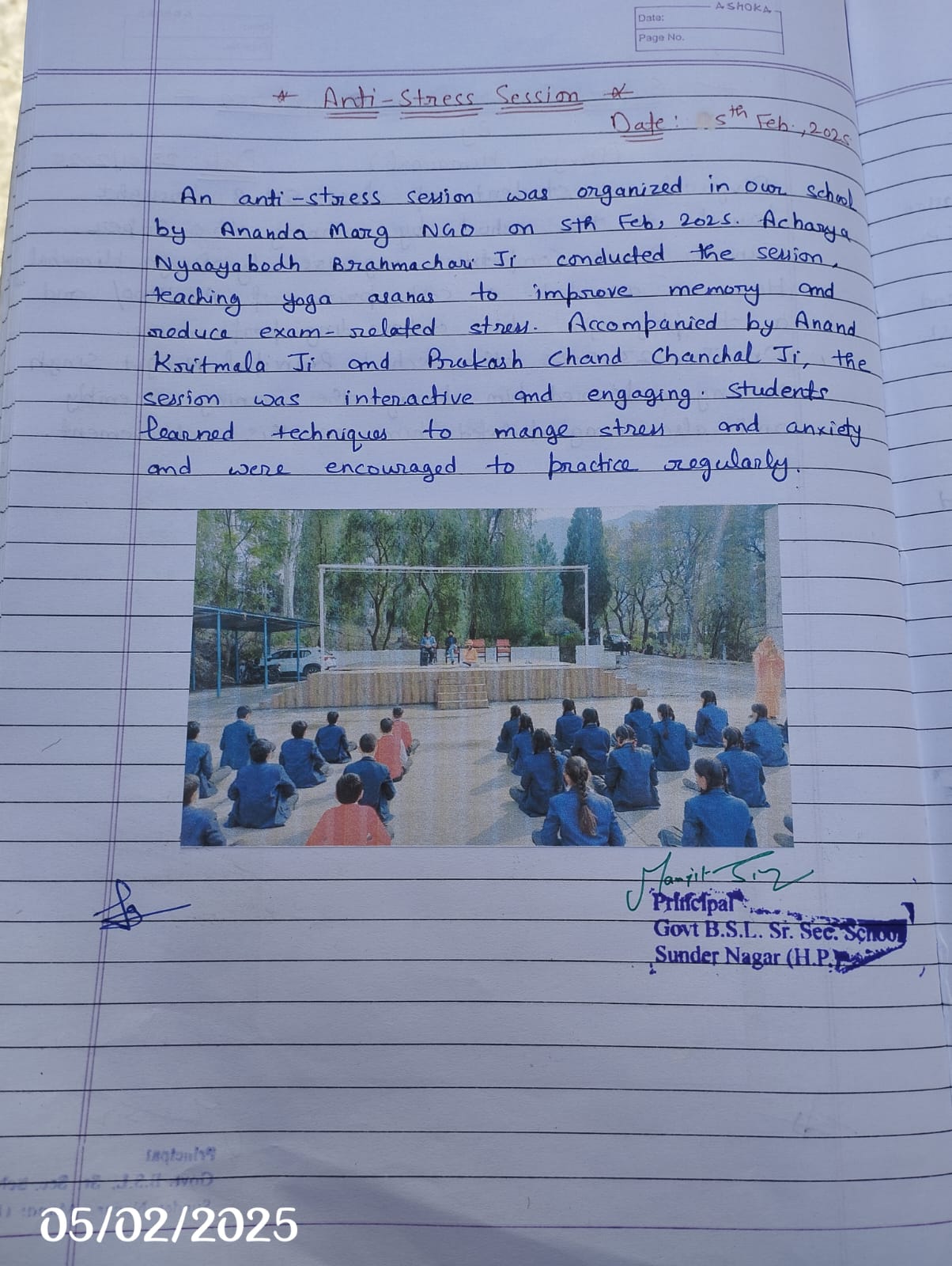 आज दिनांक 6/9/2023 को राजकीय बीएसएल वरिष्ठ माध्यमिक पाठशाला सुंदर नगर में बीबीएमबी प्रशासन के अधीन संचालित होने वाले चिकित्सालय के चिकित्सकों द्वारा पाठशाला के विद्यार्थियों के लिए फिजियोथैरेपी के सत्र का आयोजन किया गया।