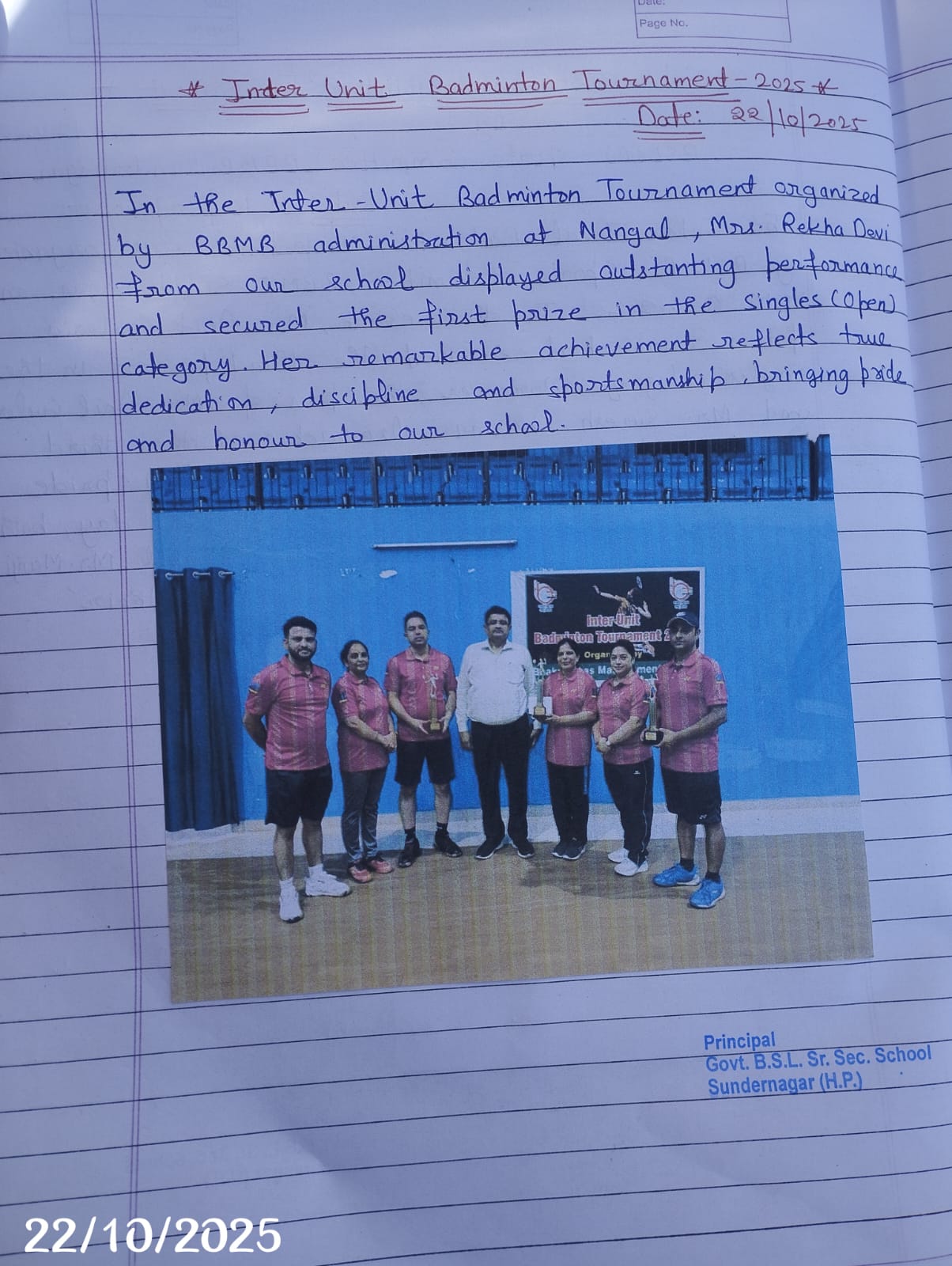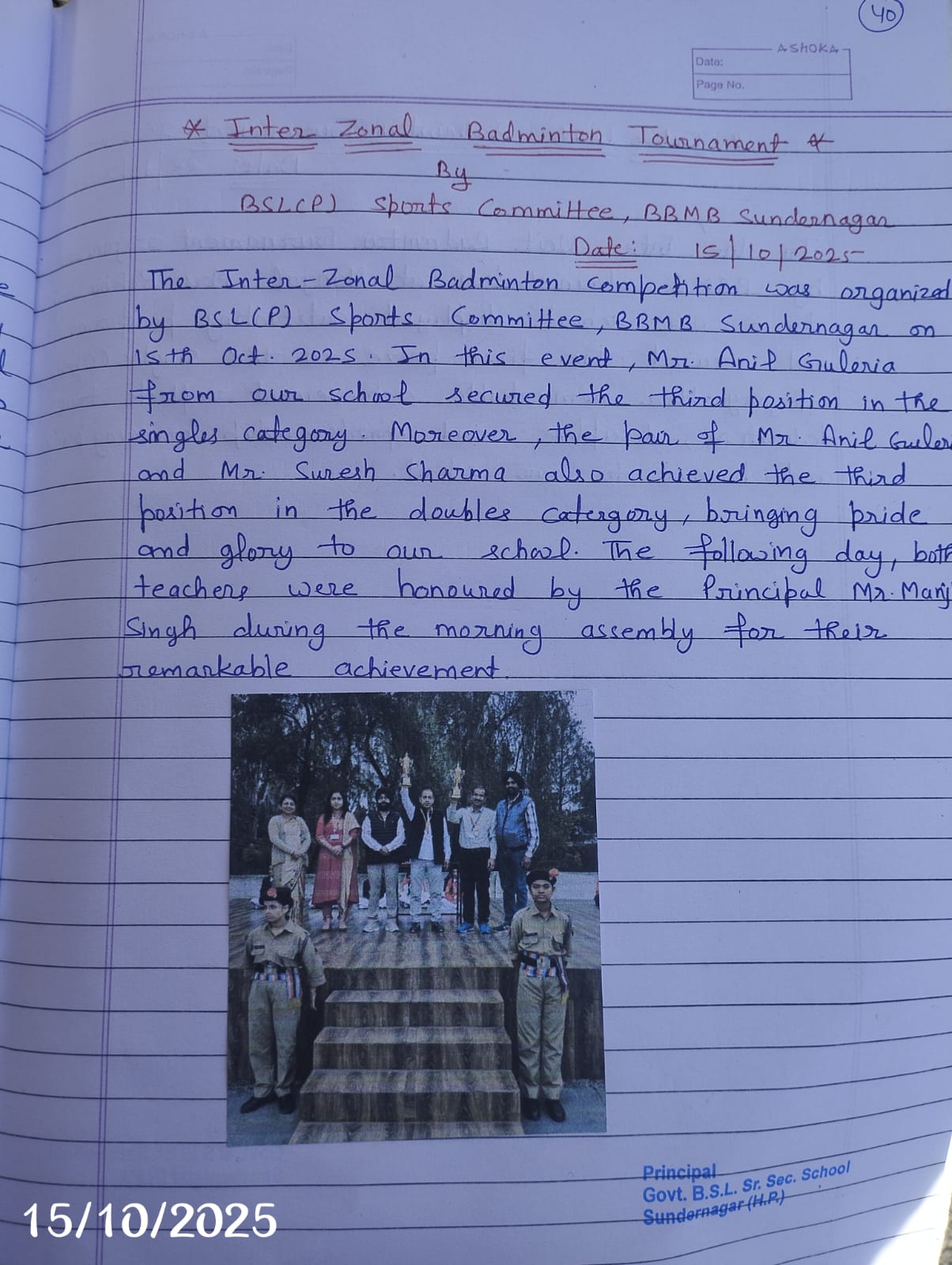 Inter-Zonal Badminton Tournament (By BSLCP Sports Committee BBMB Sundernagar) (Dated : 15-10-2025)