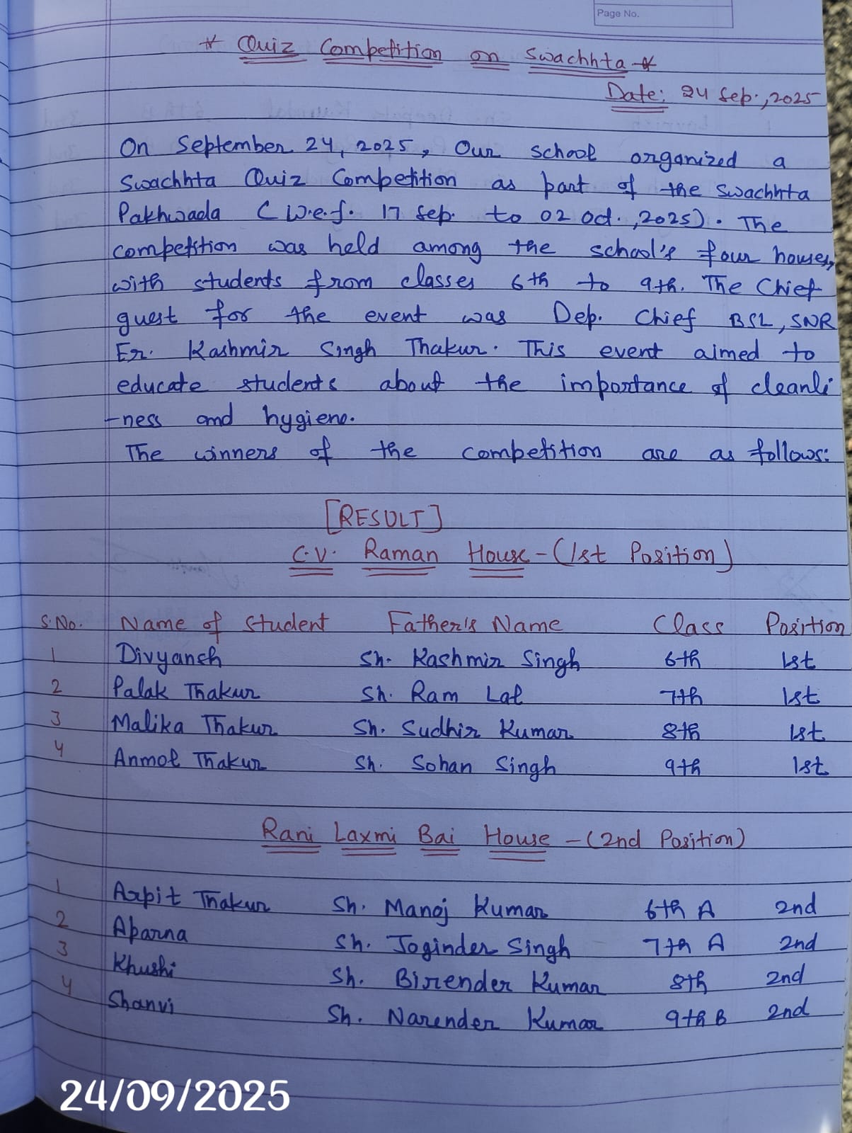 Quiz Competition on Swachhata (Dated : 24-09-2025)