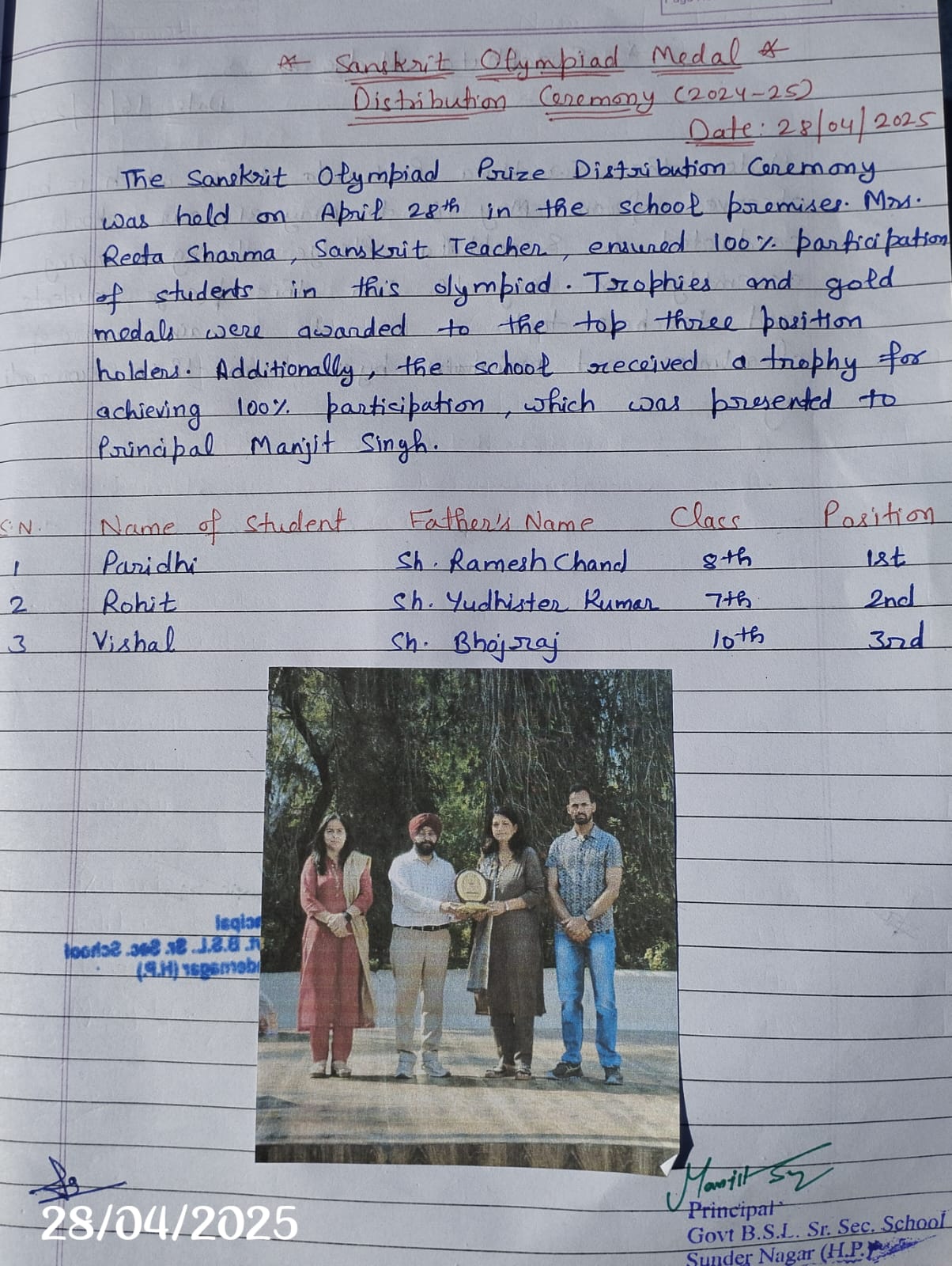 Sanskrit Olympiad Medal Distribution Ceremony (Dated : 28-04-2025)