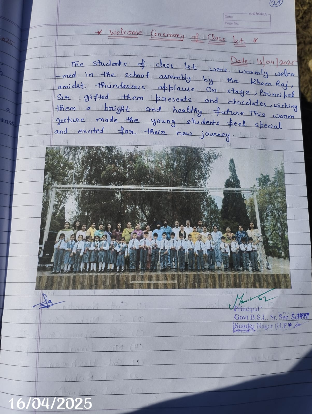 Welcome Ceremony of Class 1st (Dated : 16-04-2025)